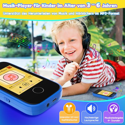 Dhapy Kinder Handy Smartphone, Touchscreen MP3 Player mit Dual Kamera Jungen Mädchen, Geburtstags Geschenke Lerntelefon Spielzeug ab 3 4 5 6 7 8 Jahre mit 8GB SD Karte, Blau