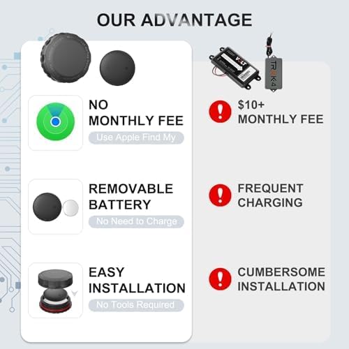 | Features | 【Keine monatliche Gebühr】Smart Tag Gerät erfordert keine monatlichen Gebühren oder Abonnements. Ein Tracking-Gerät für Autos ist besser als eine AirTag-Alternative. Erhältlich auf iOS-App können Sie in Echtzeit von überall auf der Welt verfolgen – unabhängig davon, wo Ihr Fahrzeug-Tracker-Gerät ist., 【Arbeitet mit Apple Find My】Nie wieder verlieren Sie Ihre Wertsachen mit unserem Smart Tag, die Sie leicht zu verfolgen und finden Sie Ihre Artikel mit dem „Find My“ APP ermöglicht. Ob es sich um Ihr Auto, Gepäck, Schlüssel, Rucksack oder andere Gegenstände handelt, dieses Ortungsgerät hilft Ihnen, den Überblick über Ihre Dinge zu behalten. *Hinweis: Android-Geräte werden nicht unterstützt., 【Echtzeit-GPS-Tracker für Fahrzeuge】Echtzeit-Tracking und der aktuelle Standort des Geräts können in Echtzeit über die „Find My“ APP angezeigt werden. GPS-Positionierung, Echtzeit-Updates und stabiles Signal gehen nicht verloren, egal wo Sie sind, können Sie den genauen Standort des GPS-Trackers auf einen Blick erkennen. (Nur iOS, funktioniert nicht mit Android)., 【IP68 Wasserdicht Staubdicht】IP68 wasserdicht und staubdicht Fähigkeiten, das Hinzufügen einer zusätzlichen Schicht von Schutz für das GPS-Tracking-Gerät, verhindern, dass enthaltene GPS-Tracker von Wasser, Staub und Schäden. Ultra-kompaktes Design, leicht zu tragen, und kann an mehreren Orten platziert werden, wie Rucksack, Gepäck, Brieftasche, Koffer oder Handtasche, etc., 【Super Batterielebensdauer】Eingebaute CR2032 Knopfbatterie, lange Batterielebensdauer, lange Standby-Zeit von über 10 Monaten, und kann leicht für den Langzeitgebrauch ausgetauscht werden (Wenn die Leistung niedriger als 20% ist, sendet das Gerät automatisch einen Alarm bei niedrigem Batteriestand, um den Batteriewechsel zu erinnern)., 【Magnetischer Fahrzeugfinder】Das robuste Gehäuse besteht aus haltbarem ABS-Kunststoff und ist mit einem übergroßen, ultrastarken Magneten ausgestattet, der das Gerät fest an Fahrzeugen befestigt und in jeder Situation aufzeichnet. Lässt sich in Sekundenschnelle an flachen Stahl-/Eisenoberflächen befestigen. Verwenden Sie als GPS-Tracker für Gepäck, GPS-Tracker für Kinder und Fahrzeug-Tracker. |