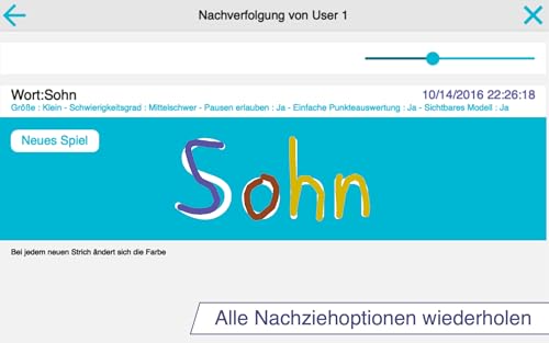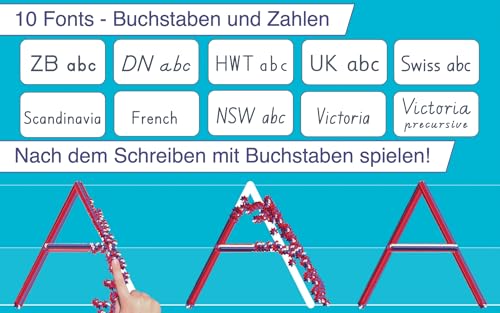 | Features | Kostenlose Version – Diese App enthält nur einen Teil der Buchstaben, Zahlen und Wörter., Kinder können mit 50 animierten Stickern und Sound-Effekten schreiben üben, Nachdem die Schreibaufgabe abgeschlossen wurde, erwachen die zum Schreiben verwendeten Sticker zum Leben und die Kinder können in 6 Spielen mit ihnen interagieren, Kinder können jedes Wort schreiben – z. B. ihren Namen – denn die App lässt sich personalisieren, Kinder können Sterne im 5-Sterne-Spielmodus sammeln, Detaillierte Berichte informieren darüber, was das Kind gemacht hat, inklusive der Möglichkeit, das Spiel erneut zu spielen und die Rückverfolgung per E-Mail zu exportieren, Möglichkeit, Ihre eigenen Wortlisten zu erstellen (sowie Audio-Aufnahmen für jedes Wort), Mehrere Parameter, um die App dem aktuellen Lern-Niveau des Kindes anzupassen (z. B. Buchstabengröße, Schwierigkeitsgrad, Modell anzeigen/verbergen,…), 10 Schriftgrößen, Unbegrenzte Nutzeranzahl |