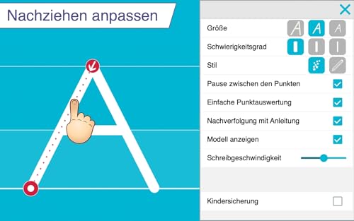 Ein herausragendes Merkmal der App ist die Möglichkeit zur Anpassung an das individuelle Lernniveau des Kindes. Die Benutzer können verschiedene Einstellungen wie Buchstabengröße und Schwierigkeitsgrad anpassen, was sicherstellt, dass die Kinder in ihrem eigenen Tempo lernen können.