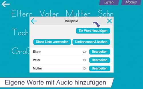- Personalisierbare Wortlisten für individuelles Lernen