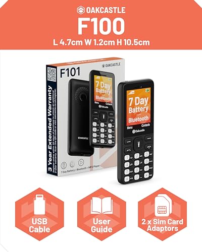 Oakcastle F100 | Handy Günstig mit Dual-SIM & Micro SD | Bluetooth & 7 Tage Akkulaufzeit baustellenhandy | Medien & Spiele | Seniorenhandy ohne vertrag | Prepaid Tastenhandy