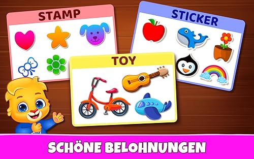 | Features | Klare und übersichtliche Oberfläche für Kinder, Überprüfe den Fortschritt deines Kindes mit Zeugnissen, Sticker, Zertifikate und andere verlockende Boni, Keine Werbung von Drittanbietern, keine In-App-Käufe, Unterhaltsame Lern-Aktivitäten für kinderhänden |