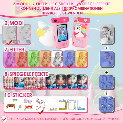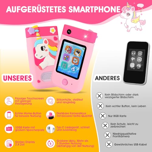 Kinderkamera, ZUEOKAI Kinder Handy Smartphone Spielzeug ab 3-8 Jahre, Kinder Kamera mit 180°Drehobjektiv &32GB Karte, Weihnachts- und Geburtstags Geschenke für Mädchen und Jungen 3 4 5 6 7 8 Jahre