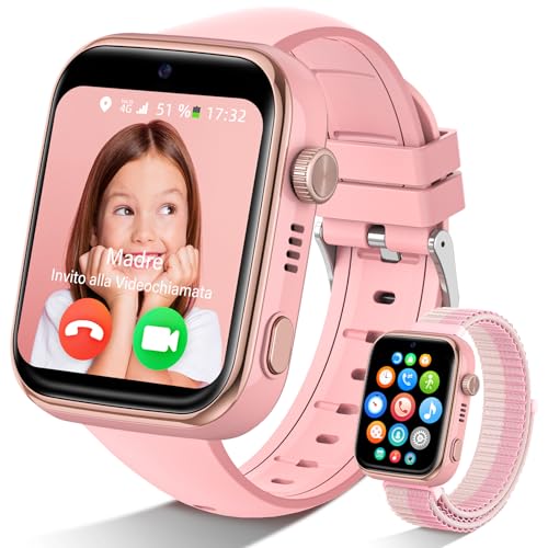 AKUMAKA 4G Smartwatch Kinder mit GPS und Telefon, IP68 Wasserdicht Kinder Smartwatch mit Videoanruf, SOS, Schulmodus, Voice Chat, WhatsApp, Schrittzähler, Wecker Kinderuhr für Mädchen und Jungen, Rosa