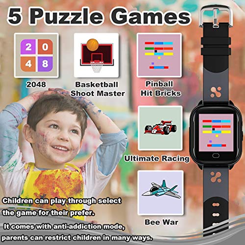 | Features | Halten Sie Kinder sicher mit SOS-Anruf – Eltern können die Kinder durch die Uhr anrufen, die Uhr kann Anrufe tätigen und empfangen. Wenn Sie in Not sind, können Kinder die SOS-Taste drücken, um die Nummern der Familie rund um Hilfe zu rufen. Große Hilfe für Kinder in Notsituationen., IP67 wasserdichte Smartwatch – IP67 wasserdicht macht Ihre Kinder sich keine Sorgen über Spritzwasser, Pullover, Händewaschen oder andere Alltagsleben! Sie können die Uhr bis zu 10 Minuten in 10 m Tiefe Wasser legen. Hinweis: Nicht für lange Zeit in Wasser einweichen oder in heißes Wasser legen, Lustige Spieluhr für Kinder – Diese Kinder-Smartwatch enthält 5 Lernspiele: 2048, Basketball-Shoot-Master, Bee War, Pinball Hit Bricks, Ultimate Racing. Kinder können das Spiel auswählen, um die logische Denkfähigkeit und die Hand-Gehirn-Koordinationsfähigkeit der Kinder zu verbessern., Multifunktionale Kinder-Smartwatch – Die Smartwatch hat ein Zifferblatt, 10 Kontakte, Kamera, Fotos, 5 Lernspiele, Wecker, Taschenrechner, Kalender, Stoppuhr, SOS, Tapeten, SOS, Hintergrundbeleuchtung, Stummmodus usw., Keine App und einfache Einstellungen – Sie müssen keine App herunterladen, keine Verbindung mit dem Handy herstellen, alle Funktionen sind in die Uhr integriert, sehr einfach zu bedienen für Kinder (einfach die SIM-Karte einlegen, um sie zu verwenden. ) Diese Spieltelefonuhr ist für 3–12 Jahre alte Jungen und Mädchen entworfen, ideales Geschenk für Geburtstage und andere Feiertage |
