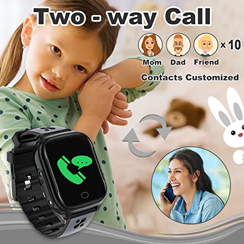 FRLONE Kinder-Smartwatch Telefon – IP67 Smartwatch Jungen Mädchen mit Touchscreen 5 Spiele Kamera Alarm SOS Anruf Digital Armbanduhr für 3-13 Jahre Kinder Geburtstagsgeschenk (Schwarz)