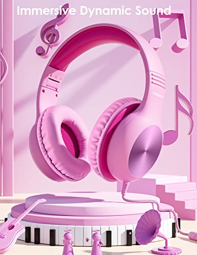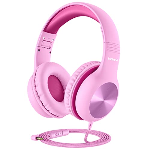 Nabevi Kinder Kopfhörer, Kopfhörer Kinder mit Kabel, 85/94dB Lautstärkegrenze, HD-Ton, Sharing-Funktion, Over-Ear Verstellbare Faltbare Kinderkopfhörer mit Mikrofon für Schule/Reise/PC/iPad, Rosa