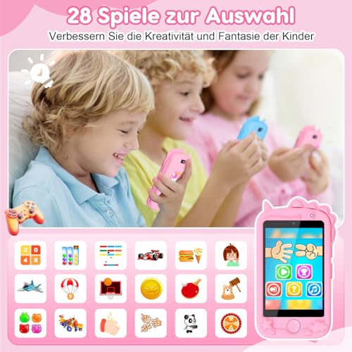 Kinder Handy, Kinder Kamera, Kinder Smartphone, Kinderhandy Spielzeug Mit Telefonkarte, Mit 28 Spiele Anruf SOS Kamera Musik Wecker. Einhorn-Geschenkspielzeug 3-9 Jahre Geschenke (Rosa)