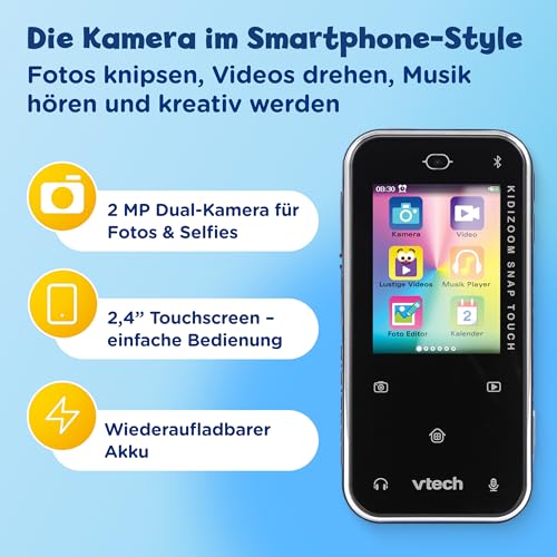 Vtech KidiZoom Snap Touch – Kinderkamera im Smartphone-Format mit Touchscreen, Selfie- und Videofunktion, Effekten, Spielen und vielem mehr – Für Kinder von 6-12 Jahren