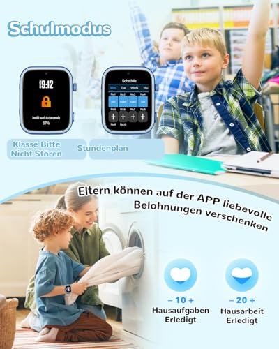 | Features | 🎉🎉Multifunktions Smartwatch Kinder🤗 – Neue 1,83‘’HD-Großbild-4G Smartwatch für Kinder ist wie ein kleines Mobiltelefon, ausgestattet mit GPS, WLAN, Videoanruf, Sprachanruf, WhatsApp, SOS, 5 Sportmodi, Fotografie, Musik, Schulmodus und Spielen, Übersetzung und Bluetooth usw. Funktionen, um den täglichen Lebens- und Lernbedürfnissen von Kindern vollständig gerecht zu werden., ✨✨4G-Videoanruf 📲 – Kinder smartwatch können hochauflösende Videoanrufe tätigen, sodass Eltern und Kinder jederzeit in Echtzeit persönlich kommunizieren und die Leistung ihrer Kinder klar sehen können. Auch Videoanrufe und Sprachchats mit mehreren Personen sind möglich. Starten Sie einen Familiengruppenchat, damit Kinder und Eltern interessante Dinge und Stimmungen im Leben austauschen können., 🌍🌍GPS Omnidirektionale Positionierung + SOS 🆘 – Kinder Smart watch verfügt über GPS + AGPS + WIFI + LBS omnidirektionale Positionierung, sodass Eltern jederzeit den Standort ihrer Kinder kennen können. Darüber hinaus können Sie auf der Uhr auch eine SOS-Nummer festlegen. Das Kind kann die SOS-Taste 3 Sekunden lang gedrückt halten, um die Schnittstelle aufzurufen und das Notrufsignal zu aktivieren, wodurch Hilfeinformationen und der aktuelle Standort an die Eltern gesendet werden.dienung: Das benutzerfreundliche Interface ermöglicht es Kindern, die Uhr intuitiv zu bedienen.Interface ermöglicht es Kindern, die Uhr intuitiv zu bedienen., 🏃♀️🏃♀️5 Sportmodi🤹♀️- Das Tragen einer Smartwatch Kinder ist wie ein Partner, der mit Ihrem Kind trainieren kann. Es unterstützt bis zu fünf Sportmodi, darunter Gehen, Hüpfen, Radfahren, Laufen und Sit-Ups, und hilft Kindern dabei, verschiedene sportliche Aktivitätsdaten aufzuzeichnen und zu analysieren, und ermutigt Kinder, Sport zu treiben und ihre körperliche Fitness zu verbessern., 💝💝App Store + Schulmodus+Doppelter Riemen👨👨👧👧- Smartwatch Kinder verfügen über einen App-Store, bei dem Eltern bei Bedarf WhatsApp, Übersetzer, Spiele und andere Anwendungen herunterladen können, um das Nutzungserlebnis der Uhr zu bereichern. Sie können auch einen Schulmodus einrichten, um Ihren Kindern zu helfen, sich auf das Lernen zu konzentrieren. Wir bieten auch einfach zu tragende Nylonbänder und bequeme und atmungsaktive Silikonbänder für Kinder an. |